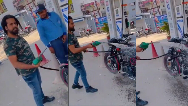 Reel के लिए इसने अपनी बाइक को पेट्रोल से नहला दिया। वहां बड़ा हादसा भी हो सकता था।@amrohapolice बढ़िया इलाज कीजिए। pic.twitter.com/IscuE16o9k
