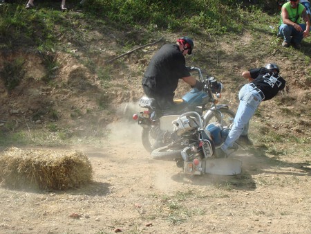 Derbis de demolición de moto. Existen, se hacen, y los vídeos que salen de ellos son auténticas joyas. Como cabras mochándose cornamenta contra cornamenta, pero encima de una moto y sobre el barro de un circuito rural. Es puro espectáculo.