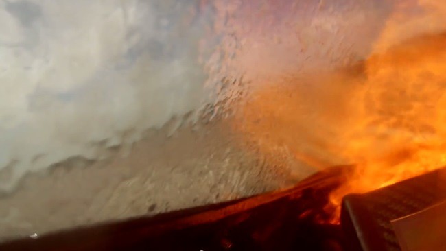 En el vídeo de hoy lo que fue mal era un humilde latiguillo del circuito de aceite. El resultada, como podéis ver en la imagen del encabezado, es que la moto acabó en llamas y bastante dañada. Por suerte para el piloto pudo parar y apartarse de la moto, aunque imagino que el susto de ver toda la pantalla llena de aceite hirviendo y llamas no debe ser como para tomarlo a broma.