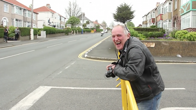 Pues bien, Ollie Green viajó hasta la Isla de Man el año pasado acompañado de su padre, que nunca había puesto un pie en suelo manés. Su padre se prepara, da los últimos toques a la cámara para ajustarla a su gusto y disparar al primer piloto que aparezca. Pero cuando pasa la primera moto bajando Bray Hill no hace ninguna foto y su cara empieza mostrar una mezcla de asombro, admiración e incredulidad. No tiene desperdicio, ¡esto es el TT!