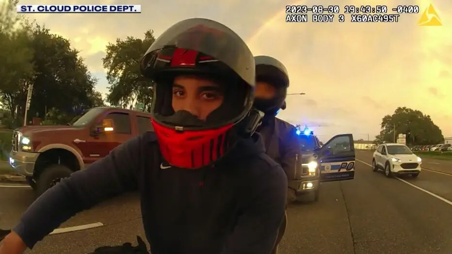 "Queda mal por mi parte, y lo entiendo, ya sabes. Íbamos a tener una cita por la noche y no hace mucho que me compré la moto. Quería impresionarla, y está muy mal. No acelero en absoluto", dijo el agente al que le pusieron los grilletes.