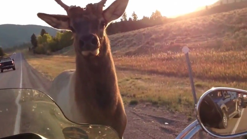 Si seguís algún medio norteamericano sabréis lo peligrosos que pueden llegar a ser estos animales si se cruzan en el camino de una moto. Algo que sucede habitualmente con graves consecuencias para el animal y para los que van en moto. Como siempre el ser humano acaba invadiendo territorios que están habitados por animales salvajes que no entienden de reglamentos de conducción ni nada parecido. Además si a este pobre alce no le hubieran alimentado nunca desde un coche, seguramente no se acercaría a ellos ni los perseguiría por una carretera a ver si le dan algo.