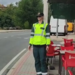 El reflejo del chaleco, el gesto rígido y el punto exacto donde está colocado hacen que coches, motos y furgonetas frenen en seco antes de darse cuenta de que el "guardia" es de plástico.