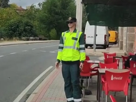 El protagonista está plantado frente al bar Islemm, un local mítico entre los moteros que cruzan la Sierra de Gredos. Lleva un chaleco reflectante, una gorra y la actitud firme de quien parece dispuesto a multar al primero que se pase de la raya. No mueve un dedo, claro, porque no puede: es un maniquí. Pero desde lejos, bajo el sol o con la luz cayendo, cualquiera juraría que es un agente de la Guardia Civil controlando la velocidad. Como para no frenar...