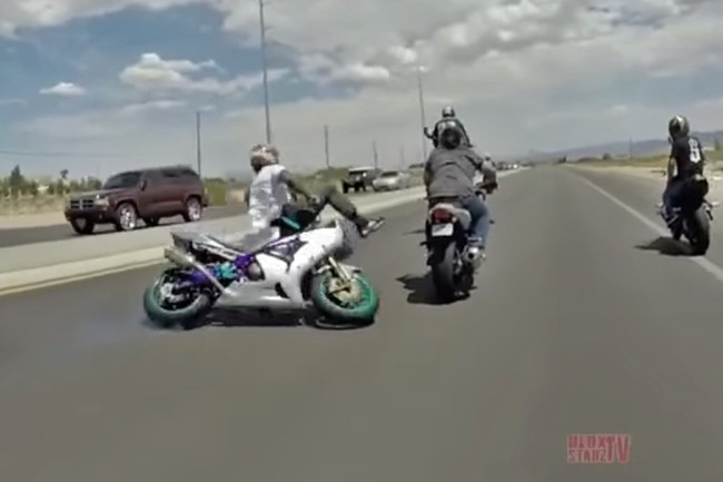 En un alarde de estupidez supina los conocidos como stunt riders de calle (vamos, los que dicen que hacen stunt pero sólo hacen el idiota a una rueda en vías públicas), este vídeo nos enseña toda una constelación de maniobras sancionables y actitudes reprochables en plena calle. Al final todo es una cuestión de prioridades, y no hay que esperar demasiado para tener un susto.