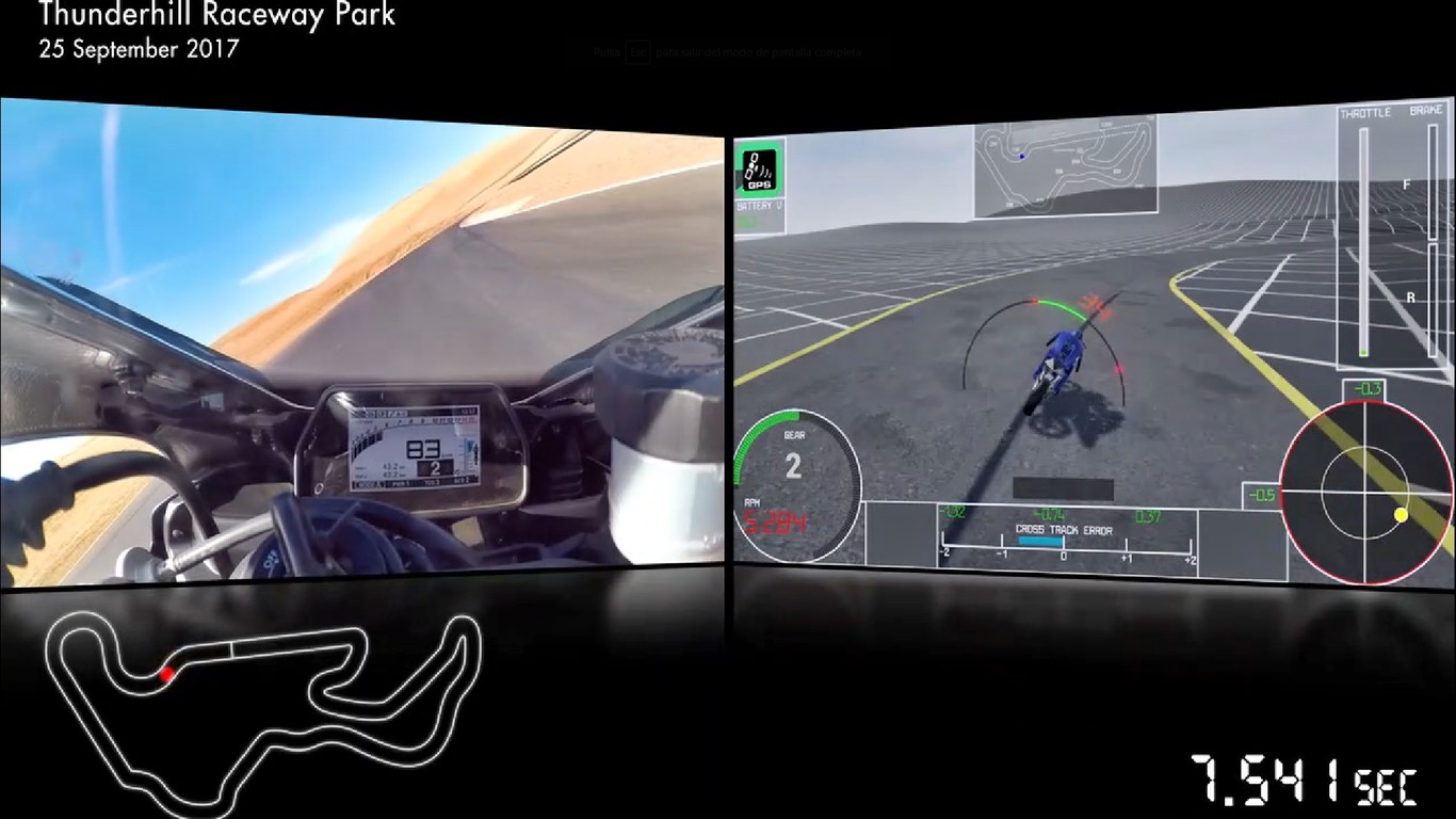 Los compañeros de Cycle World consiguieron acceder a las cámaras onboard que recogieron las prácticas de Motobot el pasado mes de septiembre en el trazado de Tunderhill Raceway Park, pero además lo han compaginado con lo que ve el androide. Y no, no es un videojuego.