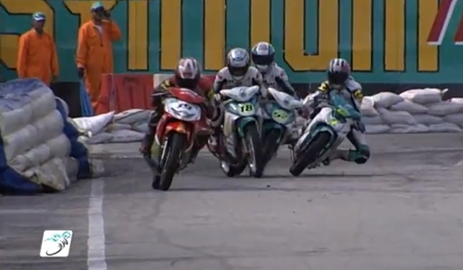 Las cosas en otras partes del mundo se hacen de manera diferente a como las hacemos por aquí. En Malasia han tenido la idea de hacer una especie de Moto2 asiática, pero menos prestacional, utilizando modelos que por aquí ni conocemos, como el más rápido y popular Yamaha LC 135. Éste modelo es un engendro extraño con pinta de scooter pero mecánica de motocicleta de modesta marchas. No podéis esperar pinzas radiales ni horquillas invertidas, pero os va a sorprender cómo van los malayos, y sobre todo las hondonadas de ostias cómo se revuelcan por el suelo los pilotos participantes.