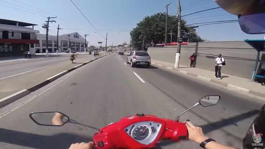 Conducir cualquier vehículo por la calle requiere un mínimo de atención. Y si no llegas a ese mínimo lo más fácil es que tengas un accidente. Seguramente al personaje de este vídeo le pase algo así. Porque en los primeros minutos lo vemos más preocupado de cómo suena su moto, cómo funciona el escape y demás "chorradas" que del propio tráfico.