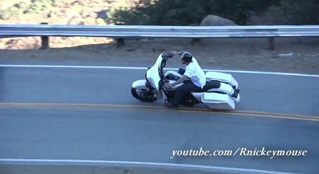 Estos días que mi compañero Jesús está probando la Harley Davidson V-Rod Muscle parece que las noticias de motos de esa marca se ven más que las de otras. En concreto a mi me ha dejado patidifuso ver el estilo de este conductor a la hora de planchar su Harley Davidson en la curva más famosa de la red.