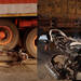 Pobre moto: la pasa por encima un camión, la tiran en vertical... Y aguanta