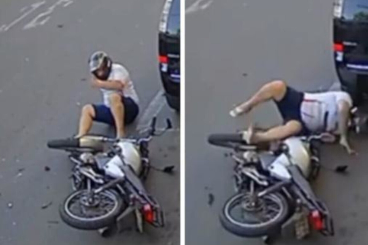 Las cámaras de seguridad del barrio de Jardim das Palmeiras grabaron el momento exacto del choque. En las imágenes se aprecia cómo el conductor de la moto que provocó el impacto se lanza del vehículo segundos antes de la colisión, mientras la otra víctima queda tendida en el asfalto.