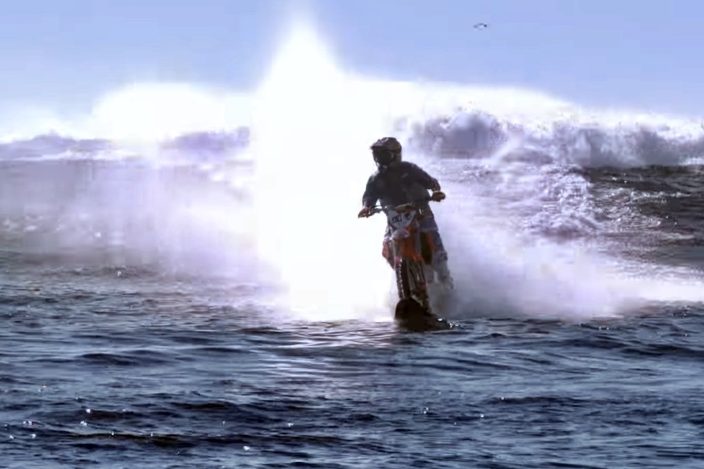 Las marcas que han logrado batir son de hecho en parte las que establecieron el año pasado, pero que no dejan de ser impresionantes para una moto normal y corriente con sus ruedas. ¿Has visto cómo se mueve en el aire y cambia de dirección sobre el agua? Impresionante...
