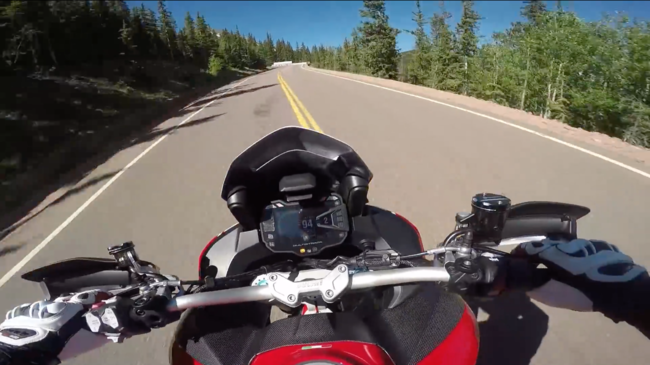 Muchos son los artículos que hablan del Pikes Peak, de su historia, de su trazado (ahora asfaltado) y de su tremenda complejidad subiendo a niveles en los que la potencia de los vehículos se ve seriamente afectada. Como no podía ser de otra manera en pruebas épicas, el riesgo es también un factor muy importante, con acantilados que quitarían las ganas de correr al 90% de nosotros. Pues bien, compañeros, ha llegado la hora de subirse a lomos de una Multistrada 1200 y dar gas como si no hubiera mañana.