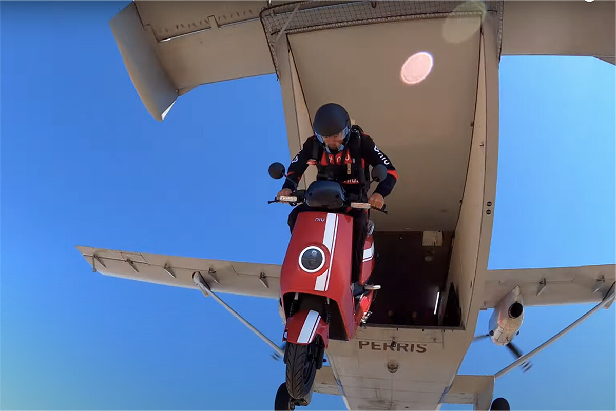 El nuevo vídeo promocional de NIU es una auténtica ida de olla, con el especialista de acción JT Holmes saltando con una de las motos eléctricas del fabricante desde una avioneta.