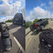 Por el tipo de cámara del vídeo no se aprecia bien... se estampó contra la pickup y luego se quedó encima de la moto, que todavía rodaba? Y luego casi lo arrolla.un trailer?? Este chico tiene suerte de no haberse convertido en pegatina