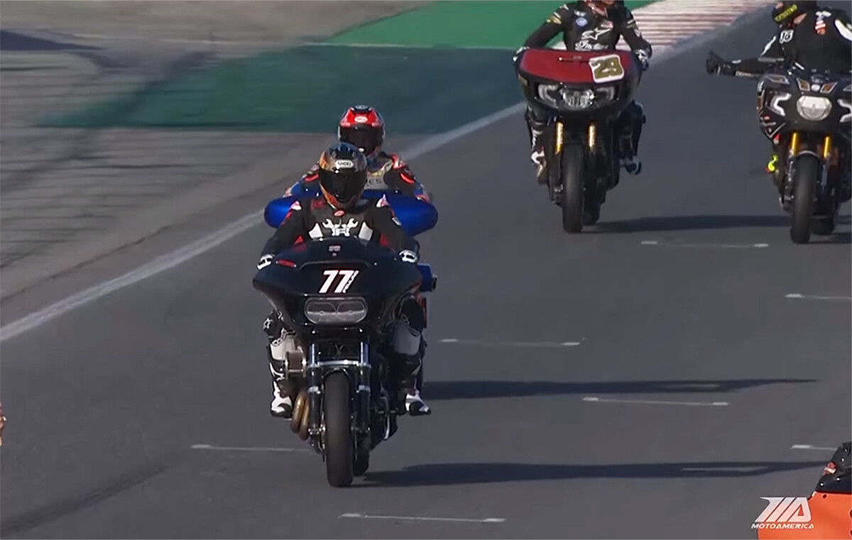 Está claro que como, en todo, lo original y lo diferente siempre llama la atención de los aficionados a las carreras de motos. Y MotoAmerica no ha querido dejar pasar la oportunidad de celebrar una carrera (o más bien un espectáculo) con motos custom de gran tamaño y peso.