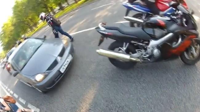 En los últimos meses estamos viendo una proliferación de vídeos en los que la relación entre conductores de moto y coche no suelen acabar bien del todo. A la mente me viene aquel vídeo que dio la vuelta al mundo en el que se veía a una banda de descerebrados en moto linchando al conductor de un Range Rover. Y que nos trajo Carlos en su momento.