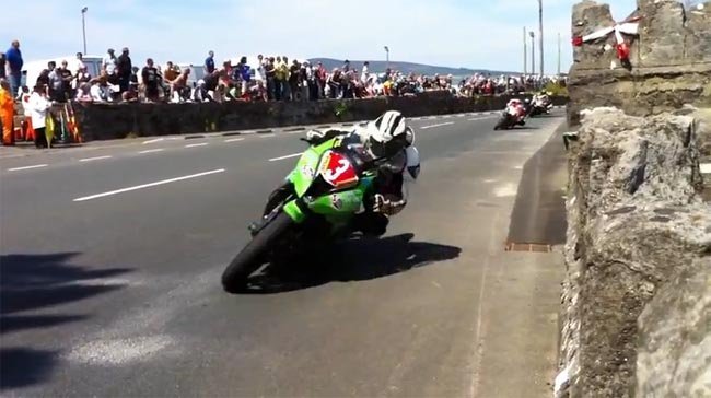 Para los más ávidos de datos comentar que las imágenes pertenecen al a Southern 100 celebrada este año en la Isla de Man. Una carrera que podríamos llamar complementaria al evento del TT, que se celebra como su nombre indica al sur de la isla, y que utiliza el mismo esquema que el TT. Se trata de un conjunto de carreteras de 6,4 km cerradas al tráfico en el que los pilotos se pelean por cada milímetro del asfalto y que se conoce como Billown Circuit. Como muestra vaya que en 2009 Connor Cummins estableció el récord de la pista en 2 minutos 16,382 segundos, lo que equivale a una velocidad media de 180.544 km/h que no es ir preciasmente despacio en un circuito así.