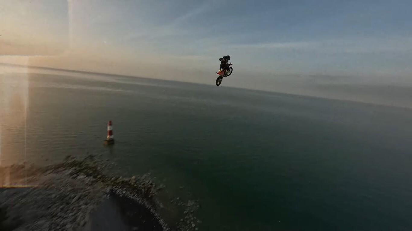 El salto tuvo lugar en los acantilados de Beachy Head. Así que tras ver el trailer de la próxima peli de Tom Cruise, se propuso hacer algo similar. Compró dos paracaídas, uno para él y otro para su KTM 450F y sin mucha posibilidad de ensayar, se tiró al precipicio. Aunque antes sí que había practicado y tirado en paracaídas sin moto.