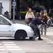 En resumidas cuentas: mal por los peatones que se encontraban cruzando en rojo, mal por el taxista detenido pisando la línea y obstaculizando la visión, mal por el conductor del Saxo que sale sin mirar demasiado (aunque es el que menos culpa tiene) y, sobre todo, extremadamente mal por la usuaria del patinete eléctrico que con la adrenalina del "mamá, voy a salir por la tele" cruzó a lo loco.