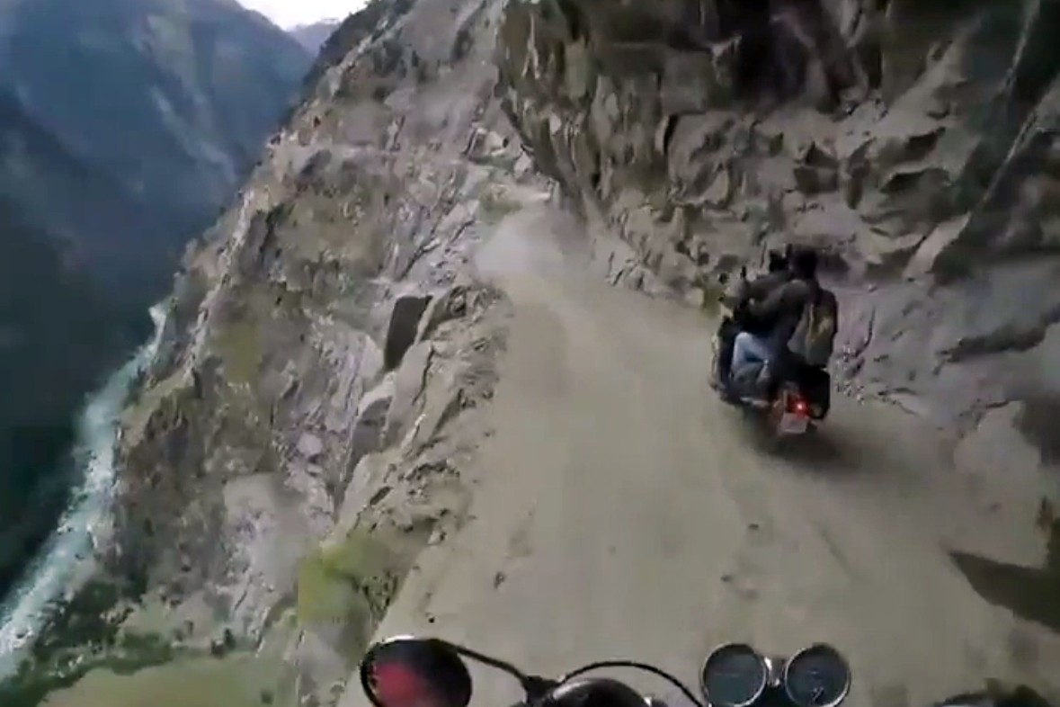 Aun así nuestros protagonistas no parecen demasiado estresados, de hecho parece que están haciendo esa ruta por pura diversión y el acompañante de la primera moto ni siquiera lleva casco. Total, un paso en falso y te vas a ir al otro barrio igualmente, ¿no?