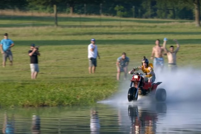 Nosotros, más que una idea tonta de Travis Pastrana, lo hubiésemos llamado como una propuesta casi imposible. En el vídeo aparece el piloto norteamericano con sus chicos de Nitro Circus y les plantea el siguiente reto: hay un lago frente a ellos no muy profundo y el objetivo es pasarlo por la superficie con sus monturas, tengan dos, tres o cuatro ruedas, a la máxima velocidad posible para que no se hundan antes de llegar a la orilla opuesta.