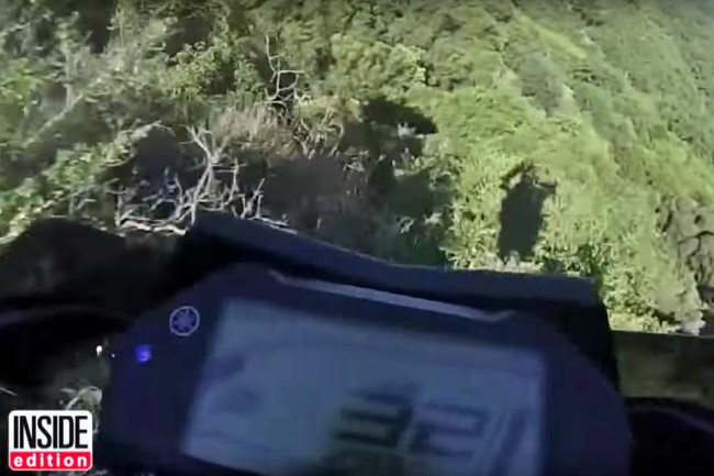Matthew cayó al precipicio con su moto. Una caída libre de casi 80 metros que le llevó directamente a ninguna parte, atravesando las copas de los árboles que se encontraban más abajo. Toda la escena fue recogida por la cámara que llevaba montada y supone uno de los mayores miedos a los que un motorista puede exponerse, pero lo peor no quedó ahí.