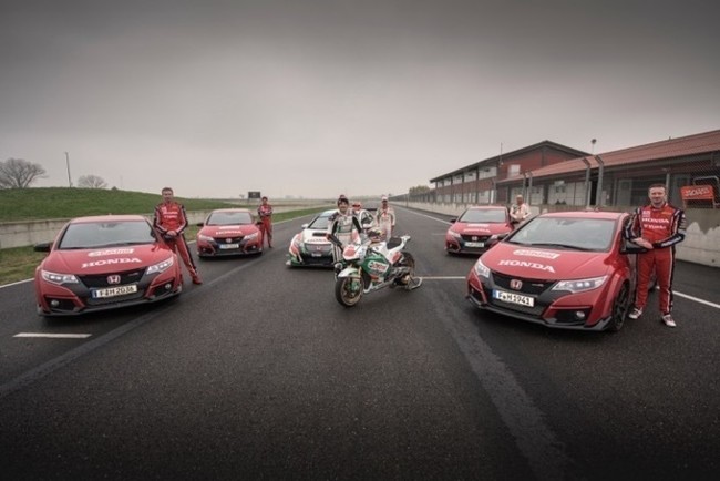 Por un lado nos encontramos a Jack Miller a lomos de la Honda RC213V de MotoGP. Así mismo en cuatro de los nuevos Honda Civic Type-R tenemos a los mandos a Gabriele Tarquini (WTCC), Gordon Shedden (BTCC), Matt Neal (BTCC) y Jack Clarke (piloto de pruebas). Y como guinda del pastel, Tiago Monteiro con el Civic WTCC. Pero lo mejor es que el vídeo está grabado en una perspectiva de 360º y es interactivo, así que play y elegir las mejores perspectivas.