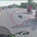 El vídeo (sí, hay vídeo) muestra el momento en que los motoristas ya se han accidentado, mientras que el animal yace en mitad de la vía malherido. No lograron esquivarlo y los tres acabaron accidentados.