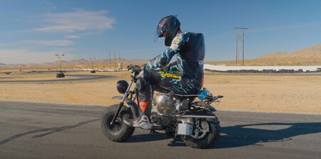 Estos youtubers se propusieron el reto de comprar una pequeña moto de vete a saber qué marca, y la equiparon y equiparon hasta conseguir una moto de casi récord. Llamativa es un rato, pero también rápida.