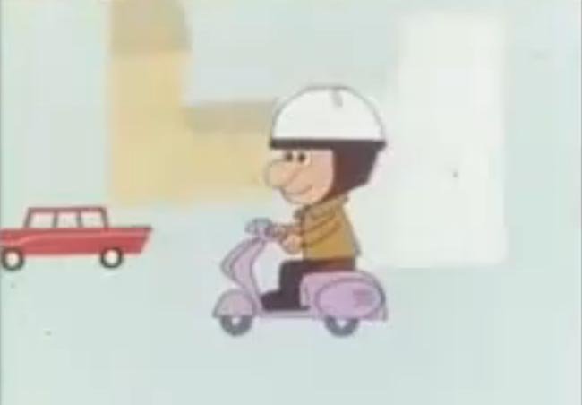 Una campaña para concienciar del uso del casco en 1964 creo que no podría ser de otra manera. Aunque vista ahora pueda parecer algo muy inocente, pero no deja de ser vigente porque todavía hoy hay gente que no se pone el casco cuando conduce una moto. Y en demasiados casos a esta gente no hay manera de hacerles entrar en la cabeza que lo que tienen que proteger por encima de todo es precisamente su cabeza, que por muy dura que sea no es nada cuando se enfrenta al asfalto o a cualquier otro objeto.