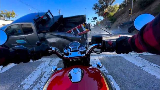 Stephen difundió el vídeo a través de Instagram. Sucedió a finales de 2022, cuando se encontraba parado en un semáforo con su Royal Enfield. En el vídeo todo parece transcurrir tranquilo, hasta el último instante que asusta, literalmente.