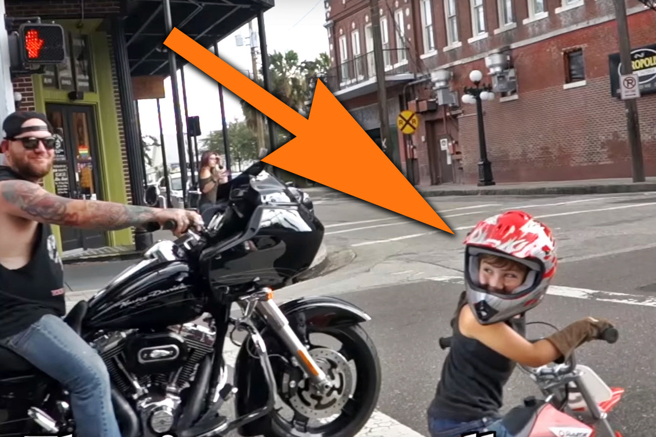 Estados Unidos es un país muy especial. La pasión de sus habitantes a veces va más allá de los límites habituales y acaba por ofrecernos de vez en cuando imágenes como las que os traemos a continuación, donde un niño de sólo 6 años ha tenido el tremendo honor de encabezar un grupo de moteros en una breve ruta por Ybor City (Florida).