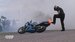 No se si es un stuntman o un lerdo, pero lo de quemar rueda en circulos sujentadola por la punta del manillar tiene su dificultad. Deben hacer falta años de practica para hacer eso, y romper muchas motos. NO digo que me guste maltratar asi una moto, pero es asunto suyo.