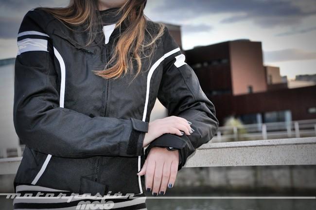 La chaqueta Acerbis Clypse Lady es, como decíamos, un modelo desarrollado para el público femenino. Está confeccionado en poliéster Oxford 600D con doble costura en las zonas críticas mientras que en interior cuenta con un forro completo de manga larga desmontable para cuando hace frío. Cuando retiramos éste (se une con una cremallera), un forro interno de malla protege el interior de la chaqueta.
