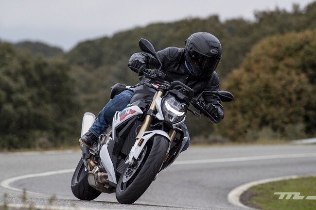 Con todos estos cambios y la reducción de peso la BMW S 1000 R se ha convertido en una moto con un comportamiento más intuitivo y directo. La naked alemana cambia de dirección con una facilidad exquisita y unas transiciones tan rápidas como precisas. Pisa muy bien en todo momento aportando una gran sensación de control reforzada por la posición tendida sobre el depósito del manillar bajo y beneficiada también por las llantas forjadas del paquete M.