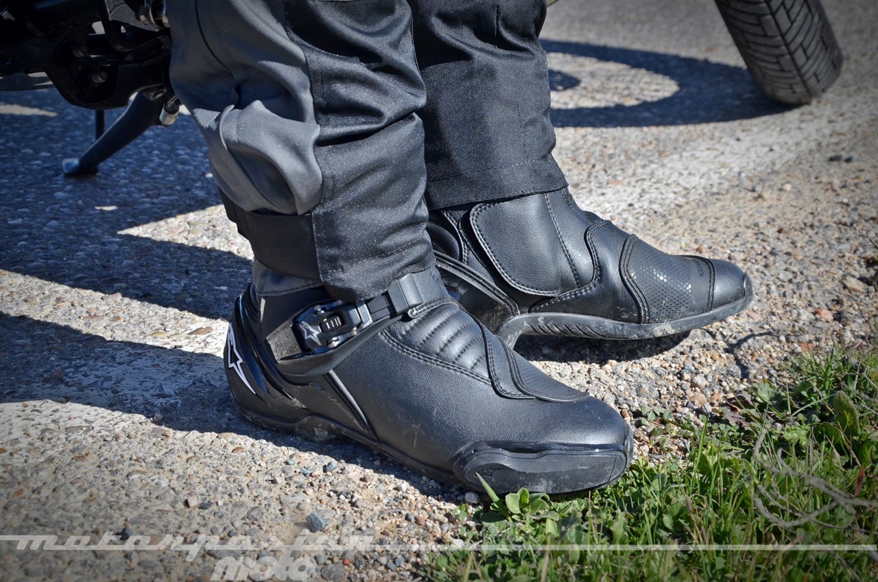 De todas estas cosas que podrían sonar tan aparatosas nos olvidamos tan pronto como metemos los pies en las Alpinestars S-MX 3 y damos los primeros pasos. El tacto de bota de moto está ahí pero no es tan claustrofóbico al contar con una caña que nos permite mayor libertad.