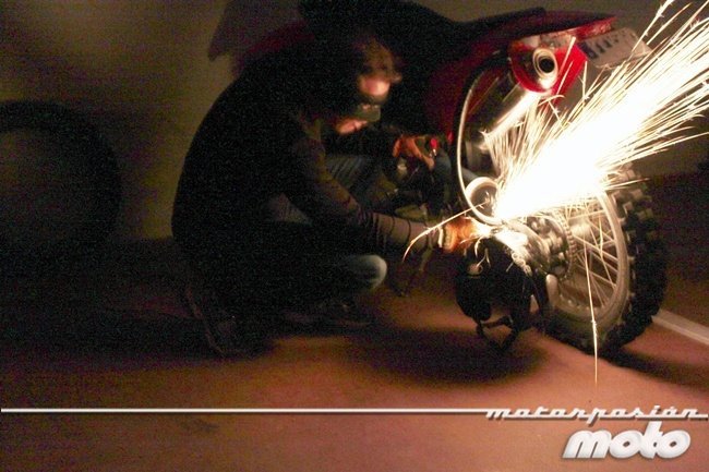 Si yo fuera un amigo de lo ajeno y al pasar por una calle encontrara una moto candada con ese bonito casco, ¿qué es lo primero que haría para poder llevármelo? Pues sin duda alguna tirar de él para ver si la anilla se queda colgando de la cadena. Y os aseguro que por más que lo intentamos, incluso con grave peligro de tirar la moto que amablemente nos prestó mi amigo Vicente para realizar parte de la prueba, lo único que conseguimos es mover la moto de su sitio.