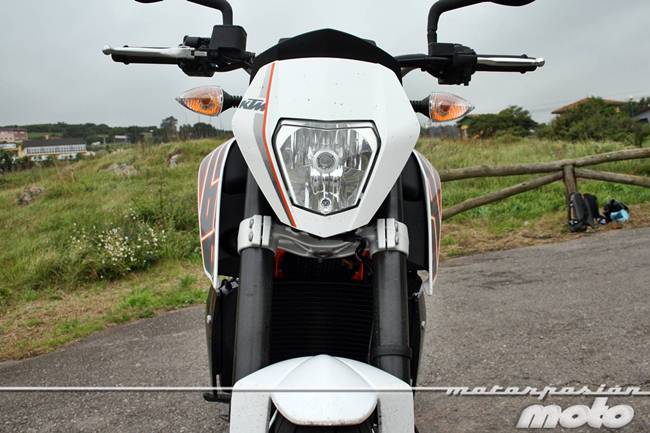 Así que lo mejor es meter sexta, buscar una velocidad y una postura óptima que te permitan ir relajado y llegar a tu destino. A velocidad constante por autopista las vibraciones son muy contenidas por lo que no te pasará como en otros mono que se te llegan incluso a dormir las manos o la planta de los pies. Puedes incluso hacer algún viajecito con ella sin problemas ya que KTM dispone en su catálogo Power Parts de herrajes y bolsas laterales.
