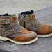 Estéticamente resultan un tanto voluminosas para alguien de talla media con una suela bastante voluminosa que destaca en color claro y sus formas generales generosas. Si en la parte delantera destacan las costuras en amarillo al estilo Timberland, por detrás unas grandes placas de metal envejecido remachadas protagonizan una vista poco convencional y bastante agresiva.