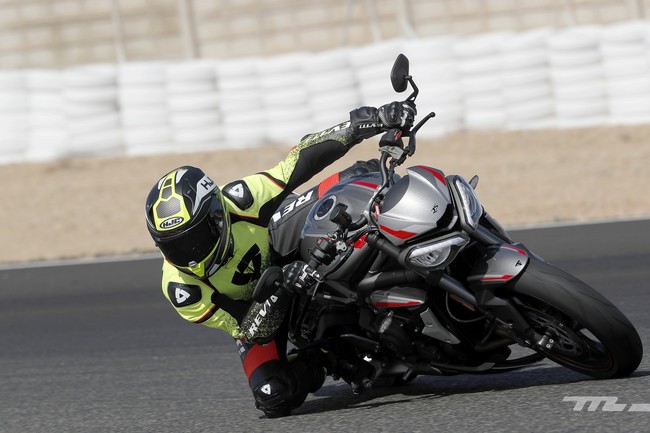 Después de unos pequeños ajustes nos volvemos a subir a ella y salimos a pista. Después de sólo unos pocos giros con el modo Track seleccionado empezamos a percibir las diferencias con respecto al modelo anterior. El motor tricilíndrico muestra aquí la verdadera cara de sus cambios.