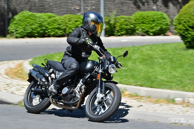 Se trata de una moto de estilo scrambler clásico pero con toques más actuales como la iluminación LED presidida con un pequeño faro redondo delantero que hace parecer más grandes a las ruedas de 17 pulgadas en ambos trenes con llantas de radios calzadas con neumáticos Pirelli Scorpion Rally de serie. Otro toque moderno es el cuadro de mandos circular 100% digital, que nos recuerda bastante al que utilizan las Ducati Scrambler.