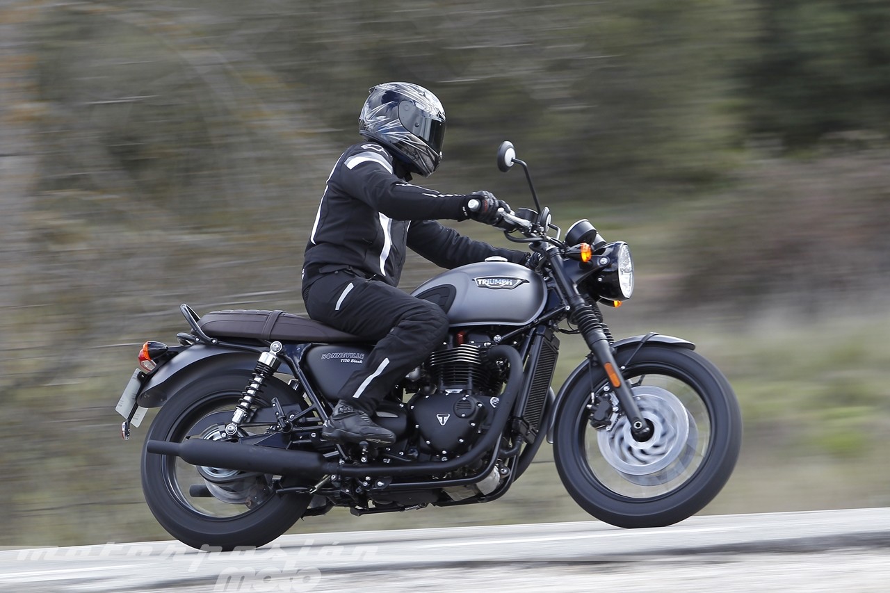 Las diferencias entre la T120 y la T120 Black se limitan al apartado estético. Las Black utilizan un patrón de color mucho más oscuro con más piezas acabadas en negro (llantas, asas, escape, motor...) y un asiento tapizado en color marrón oscuro, pero el precio es el mismo, 11.900 euros.