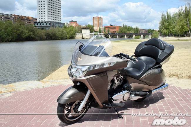 La prueba que os traemos esta semana en Motorpasión Moto no es de una moto convencional. La Victory Vision Tour que 2stroke adivino el viernes es de esas motos que dejan huella, tanto al que la ve como al que la prueba. La propia publicidad del modelo lo deja muy claro: la moto que atrae la atención y pide carretera. Y con esta frase se llega a definir perfectamente porque conseguirás girar cuellos a tu paso continuamente mientras disfrutas cada kilómetro encima de ella.
