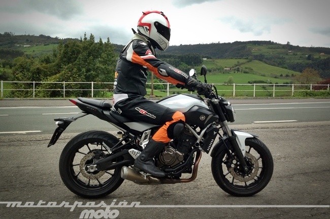 Primera, soltamos embrague y nos ponemos en marcha. Nos damos cuenta de forma inmediata que la postura es casi idéntica a la de su hermana mayor, la MT-09. No han pasado casi tiempo y las sensaciones son muy frescas: cuerpo adelantado, control absoluto de la rueda delantera y quizás un punto menos radical, con unas estriberas un poco más bajas y adelantadas que permiten adoptar una postura algo más cómoda y con el cuerpo más erguido.