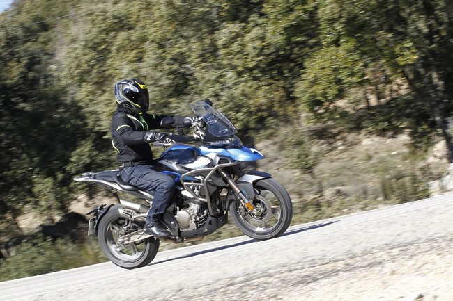 Tras unos pocos kilómetros la T-310 se muestra como una moto natural. La posición es relajada, con un buen triángulo pies-trasero-manos en líneas generales, aunque con las estriberas algo altas y retrasadas para tratarse de una trail (herencia de sus hermanas naked y carenada), obligando a llevar las piernas demasiado flexionadas.